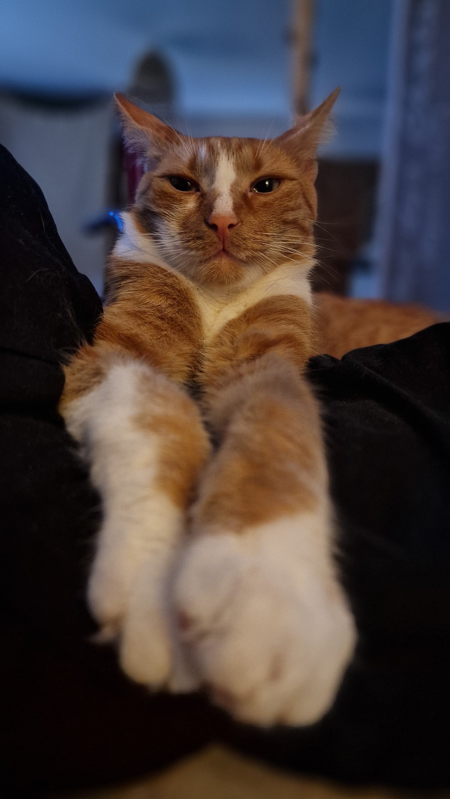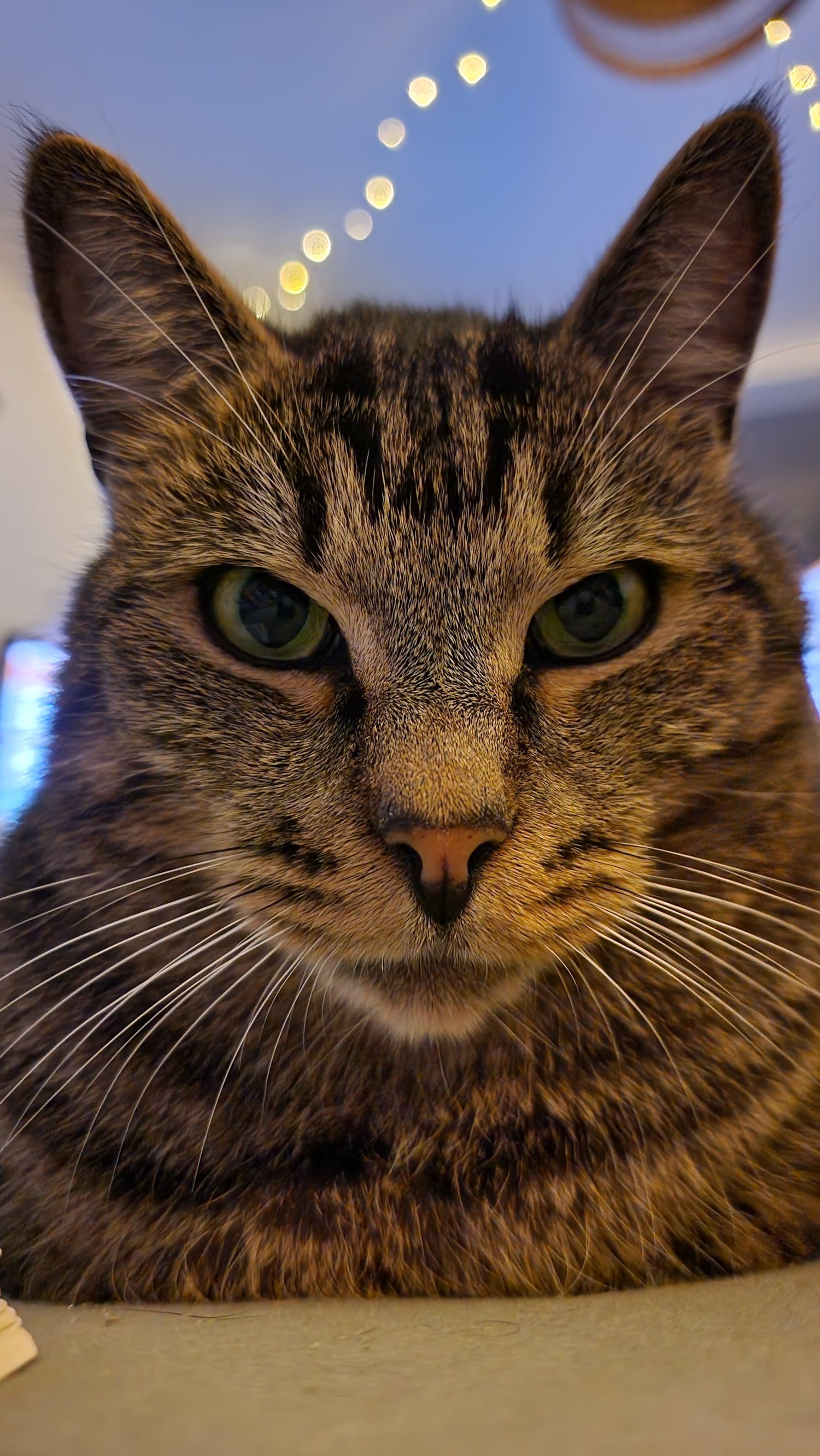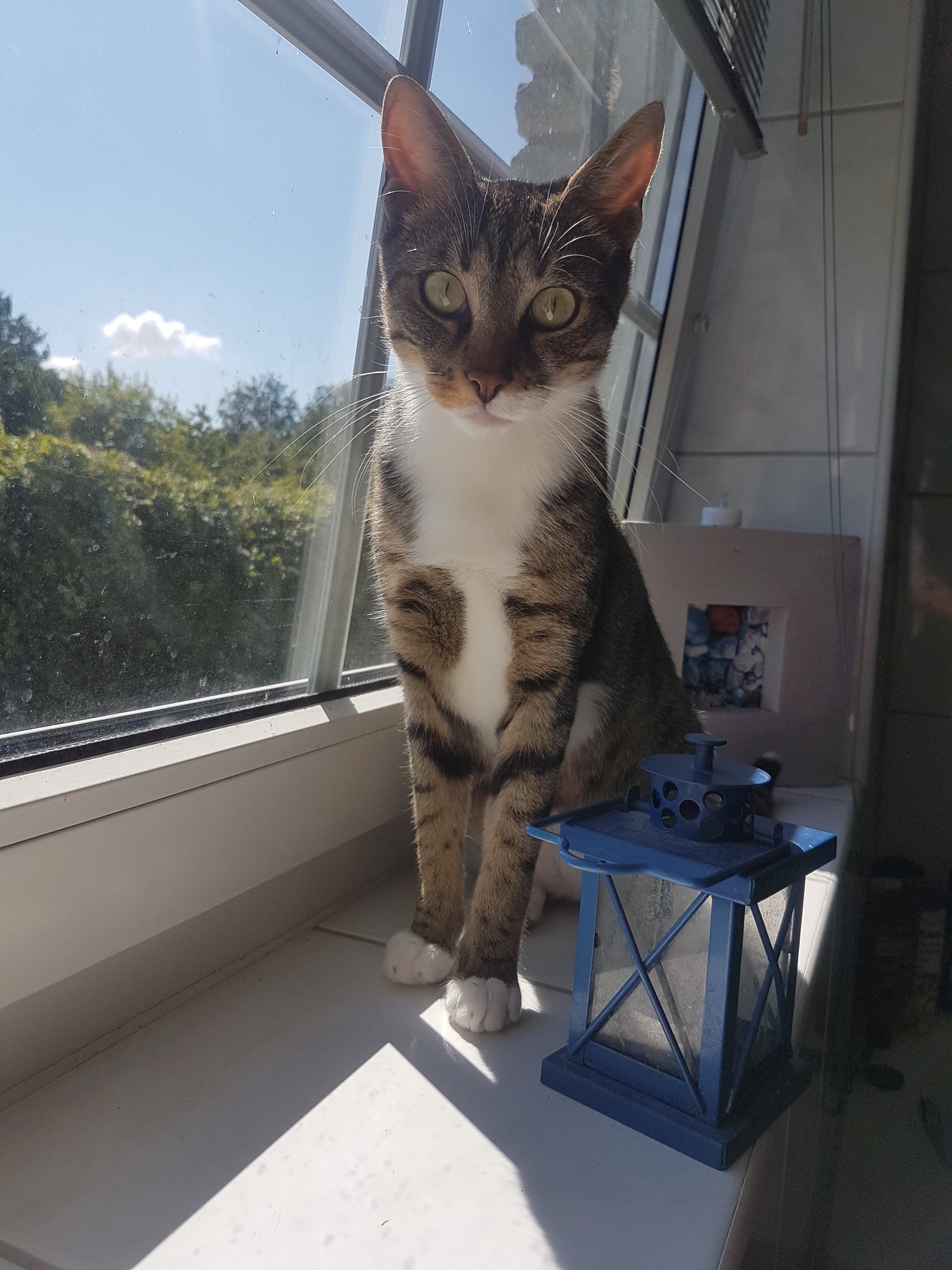 Kleine, dreibeinige Kanonenkugel mit viel Wildkatzenanteil. Sein Fell ist superdick. Wenn jemand Schuhe anzieht, ist er am Start, um die Schnürsenkel zu fangen. Er kuschelt gerne, schnurrt wie ein Traktor, legt sich aber niemals bei jemandem auf den Schoß. Als er noch nicht ausgewachsen war, wurde er von einem Auto überfahren und mit einem gebrochenen Bein von einem Passanten gefunden. Das Bein wurde amputiert und er saß einige Wochen im Tierheim in einem kleinen Käfig. Als verängstigtes, fauchendes Katerchen ist er hier eingezogen und nach nur einer Woche ist er total aufgetaut. Mit dem fehlenden Hinterbein kommt er super zurecht. Er rennt, klettert, springt und spielt. Vor den Fensterbänken steht überall eine kleine Zwischenstufe für ihn, weil er nicht ganz so hoch springen kann. Aufgrund von FORL hat er nur noch seine 4 Eckzähne. Aber auch damit kommt der kleine Überlebenskünstler prima zurecht. Da er sich nicht links am Kopf kratzen kann, übernehmen wir das öfter am Tag für ihn 😊